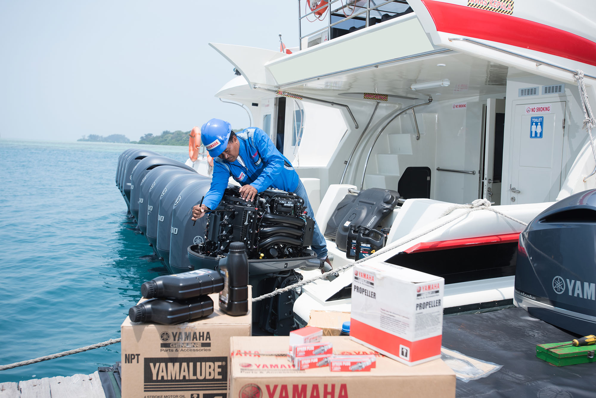 One reason why Yamaha Outboards widely used and become the main Outboards brand in Indonesia, is because Yamaha Outboards requires little maintenance, and can easily maintained by local mechanic. And all Yamaha Outboards can also easily maintained by all mechanic through out Indonesia to ensure availability and short service period.